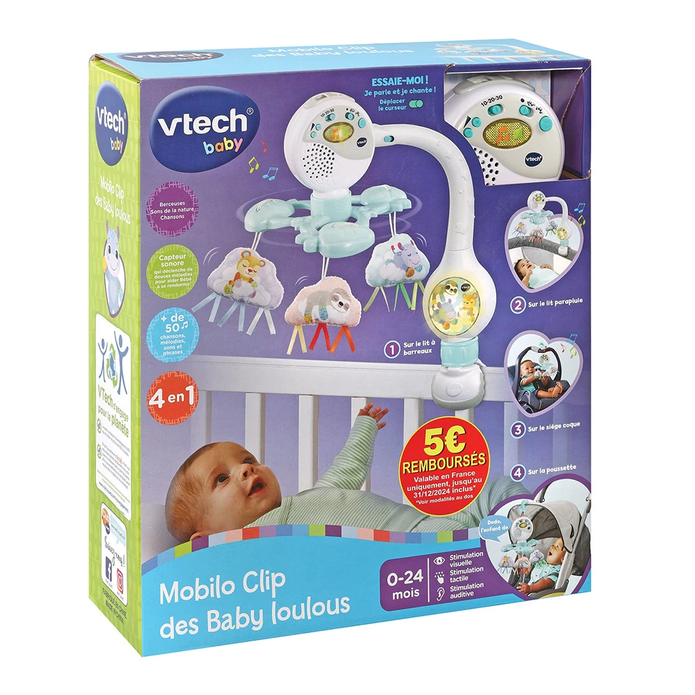 Mobilo Clip des Baby Loulous est un mobile 4 en 1 qui accompagne Bébé dans tous ses déplacements. Les douces mélodies, les sons de la nature et la veilleuse bercent votre tout-petit et l’aident à passer une bonne nuit.