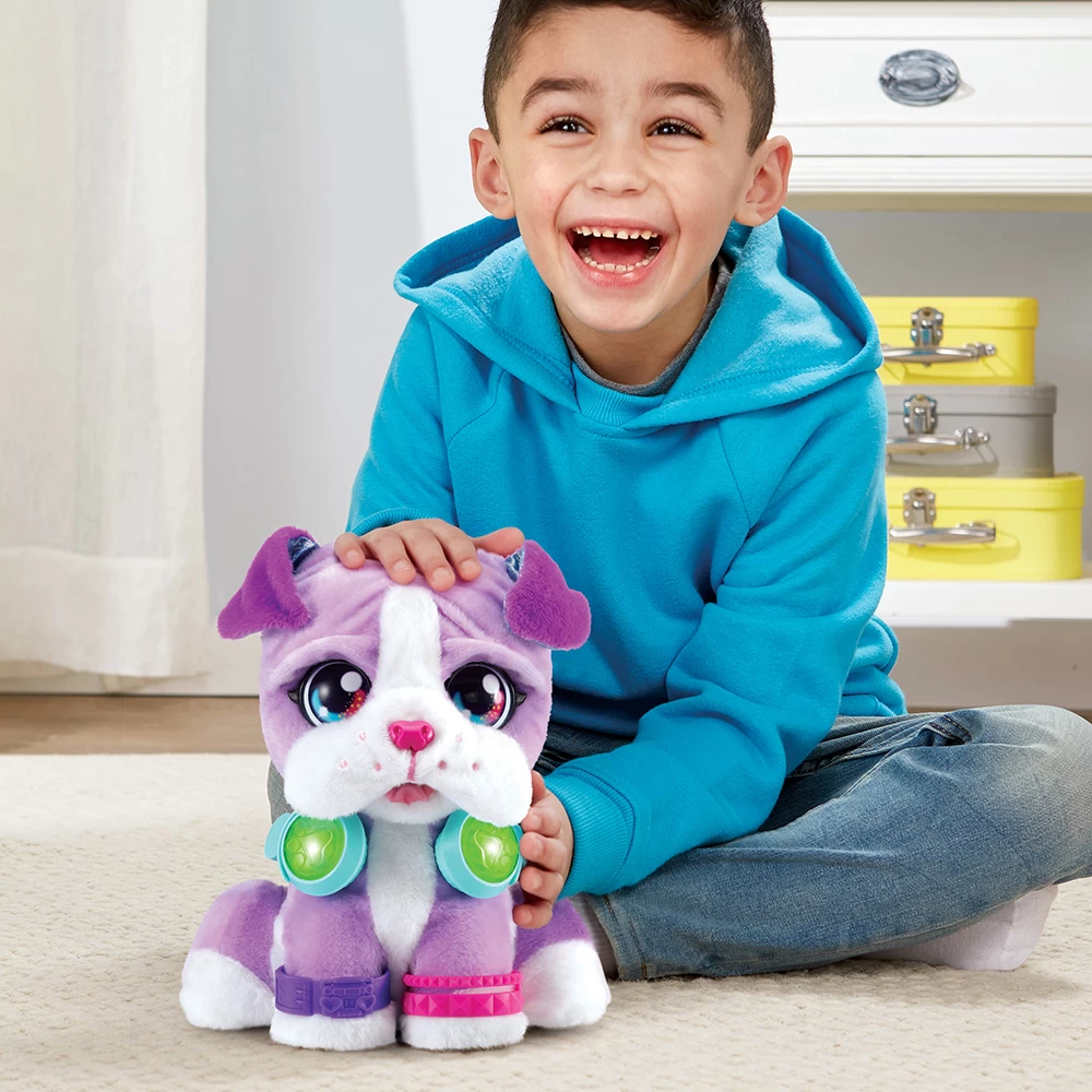 - Fun & Câlins : L’enfant prend soin de ce super chien interactif, le chien réagit aux calins en aboyant et faisant des sons amusants.