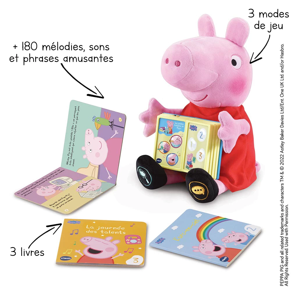 La peluche interactive Les petites histoires de Peppa raconte des histoires à votre enfant ! Elle parle de ses amis, joue de la musique et bien plus encore.